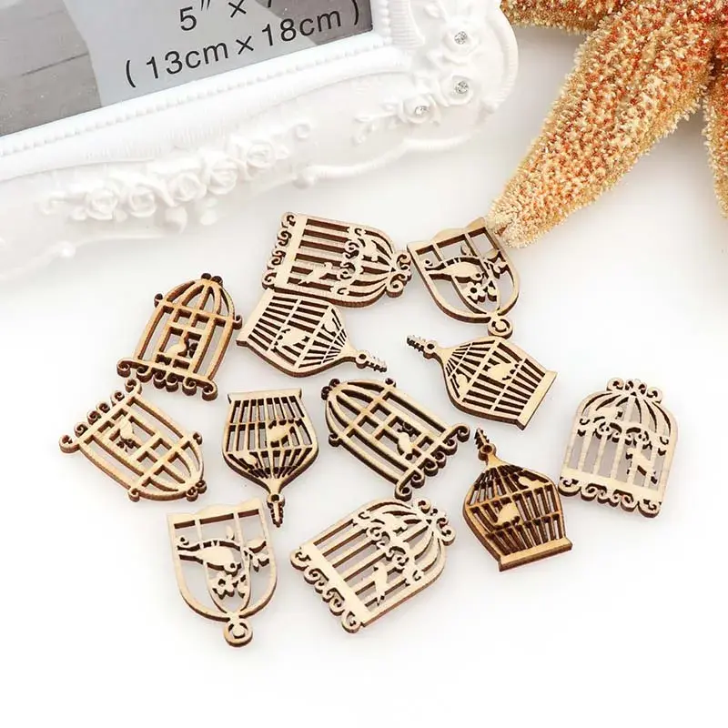 50Pcs DIY Wooden Birdcage Pendant